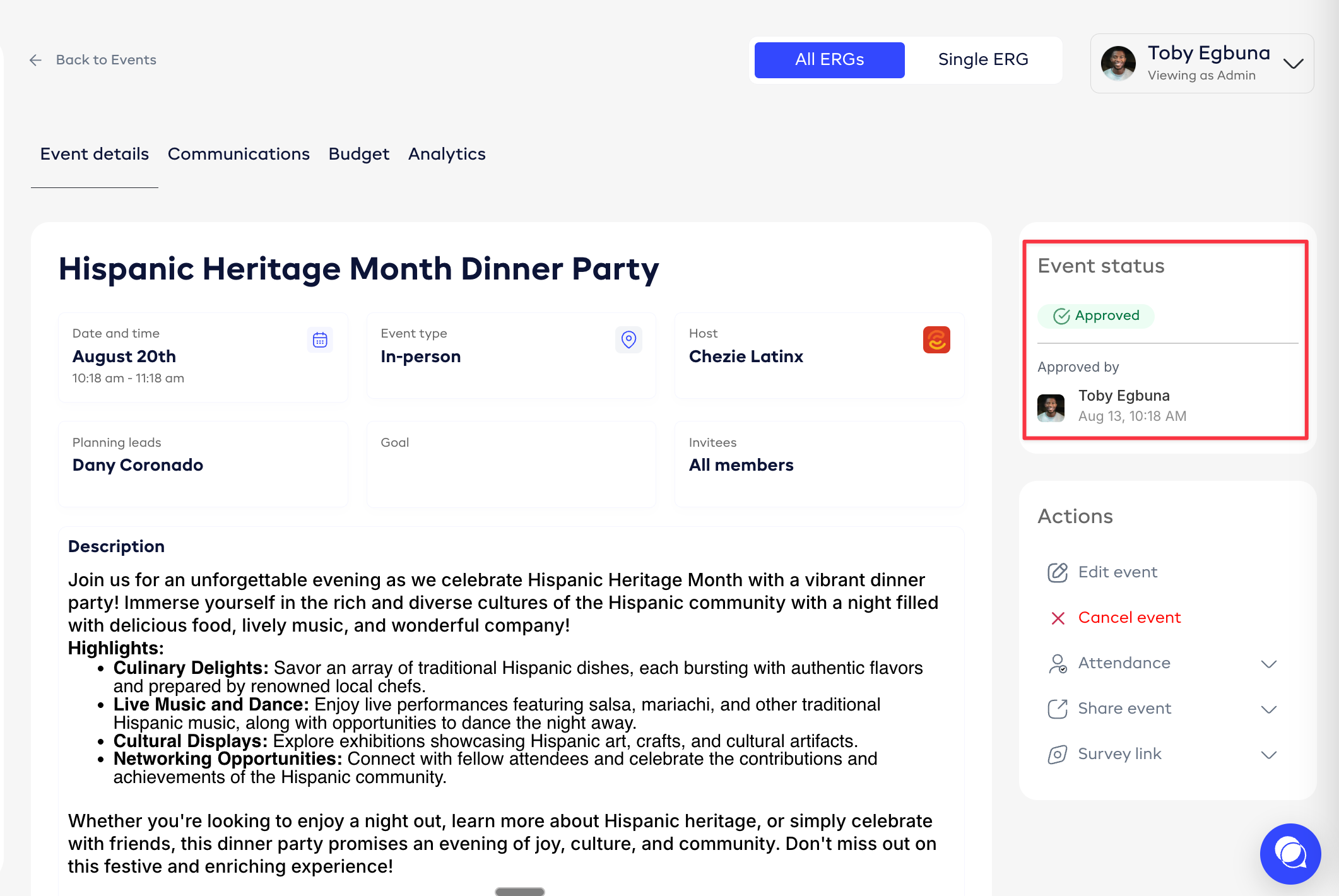 We’ve added new tracking for event approvals so you can see who approved an event and when it was approved—right from the event overview page.