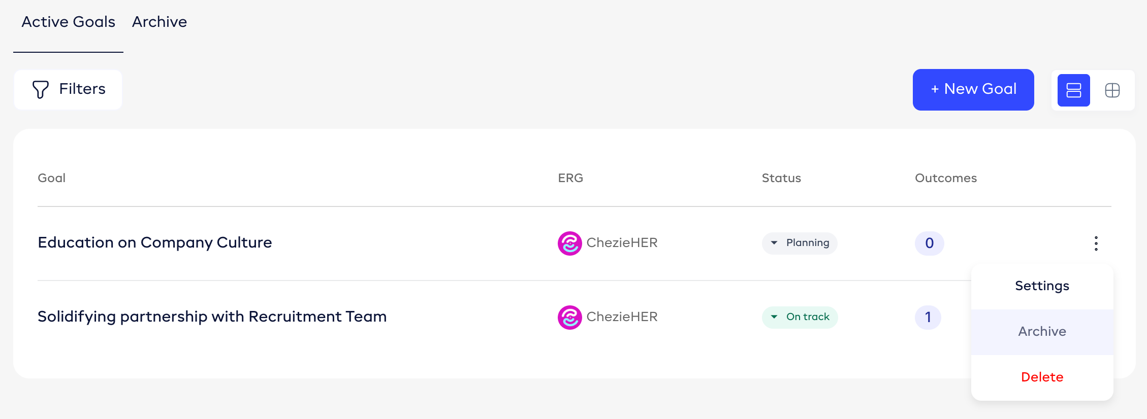 Admins can now archive completed or inactive goals to keep active planning focused and reporting clean.