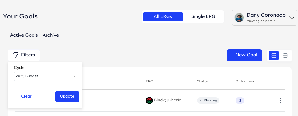 You can now filter goals by cycle, making it easier to track progress over time. Whether you want to compare this cycle’s goals to last cycle’s or review long-term trends, this update gives you better visibility into your group’s progress.