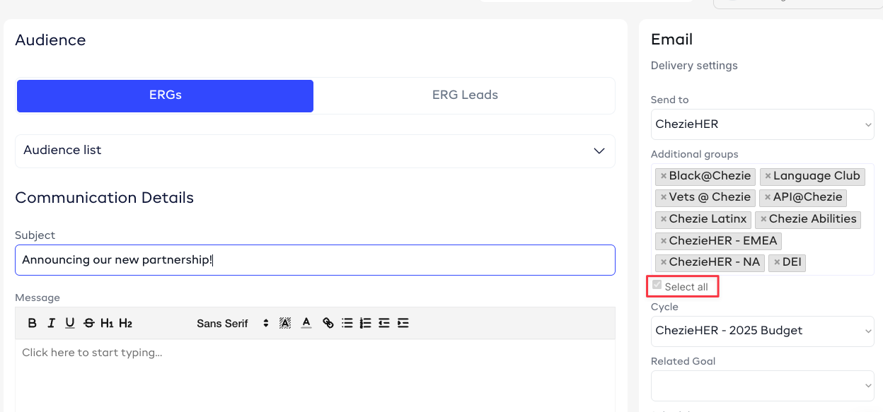 You can now select all groups with a single click when composing a communication, saving you from adding them individually.